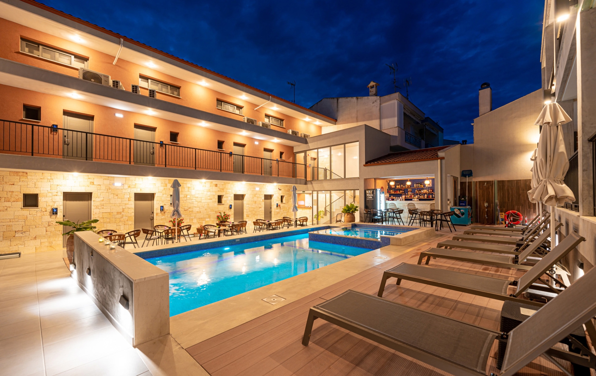 Located at the entrance of Kallithea, the hotel is easy to find and conveniently accessible by car, while the beach and the lively town center are within comfortable walking distance.